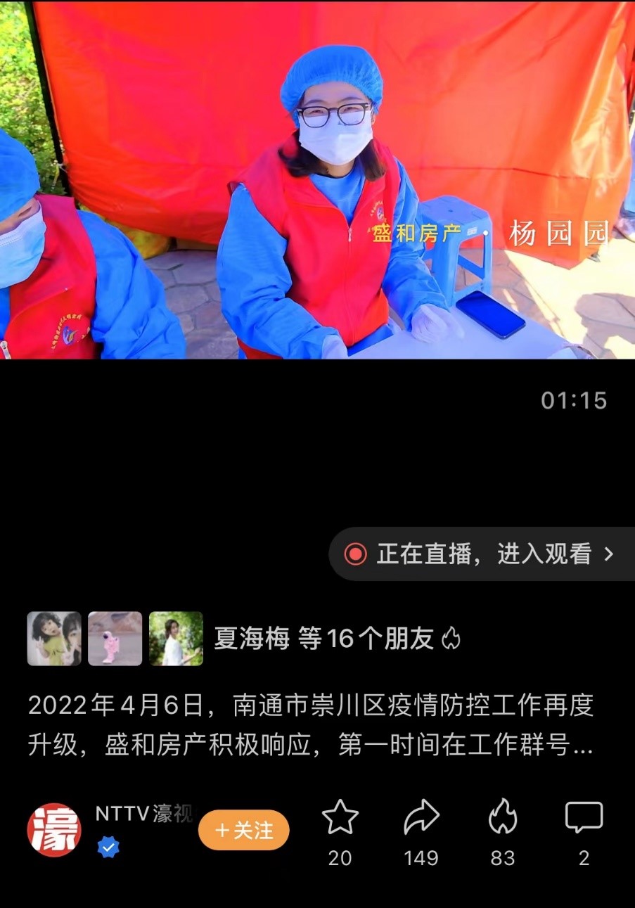 “我们公司72个人,都在社区帮忙做志愿者,也没有什么特别想说的,就是希望南通疫情快点过去,大家能够重返以前美好的生活。”这是公司综合管理部员工杨园园在红星社区核酸检测点做志愿服务时接受NTTV采访所说的话。——没有报酬,没有奖励,没有“研究”和“商量”,他们自觉自愿。他们是党员,是群众;是领导,是员工;是儿女,是父母;他们是3044AM永利集团志愿者。